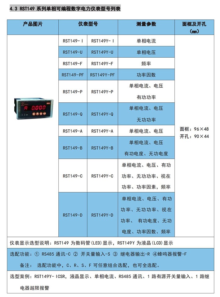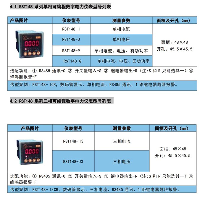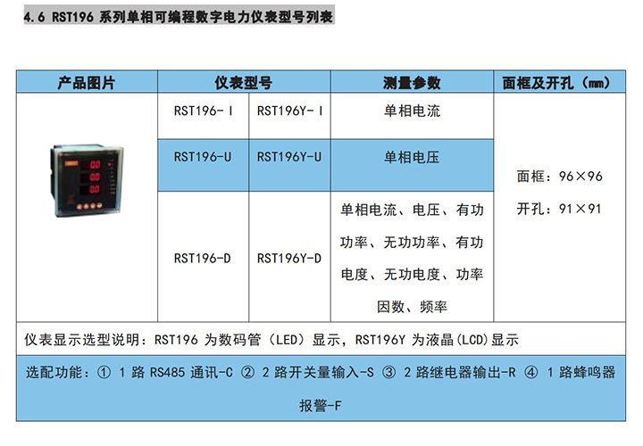 RST1 系列可編程數(shù)字電力儀表,適用于各變配電系統(tǒng),測量和顯示線路電流、電壓、有功功率、無功功率、功率因數(shù)、有功電